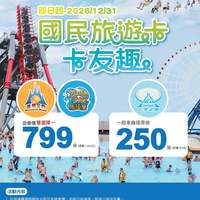 麗寶樂園 1/1~12/31 刷國民旅遊卡雙園擇一遊樂價$799元,天空之夢一般車廂$250元