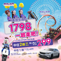 劍湖山世界 2/27~4/6 車牌號碼1798 中2碼(含)以上 299元、中1碼 499元