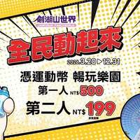劍湖山世界 3/20~12/13 憑運動幣暢玩樂園 第一人500元、第二人199元
