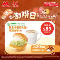 摩斯漢堡 即日起 -2026/3/31 每週二 早餐獨享 黃金塔塔鱈魚堡 +摩斯咖啡(M) 只要$89