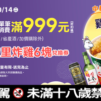 美廉社指定酒類單筆滿 999元 (折扣後) 就送 拿坡里炸雞6塊兌換券